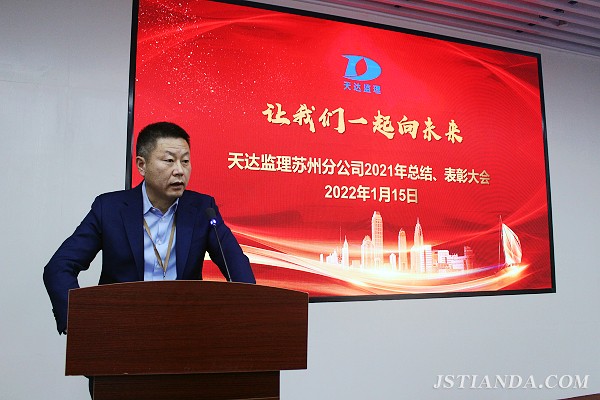 随后,苏州分公司戚士超副经理发表了题为《让我们一起向未来》的主题报告。戚经理结合监理行业的发展分析了我们的机会与挑战,并通过苏州分公司2021年度10个重点工作和5个职业能力提升建议,诠释了企业高速发展背景下如何提升监理服务品质,以及在提升服务品质的同时,如何实现个人能力的提升。他号召全体监理人员统一思想、振奋精神,转变作风,拼搏实干,一起向未来。