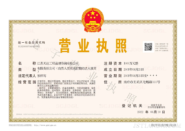 6月10日,天达监理正式完成公司名称的变更手续。原公司名称“江苏省天达燃气工程建设监理有限责任公司”变更为“江苏天达工程监理咨询有限公司”。