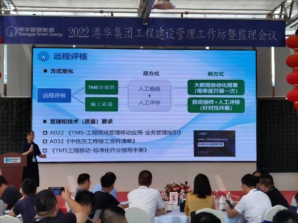 港华集团席丹副总裁结合港华工程管理最新动态,作了题为“持之以恒,质效并进”的主旨发言。港华集团工程部陆琴总监结合工程建设管理评核最新成果,介绍了TMS移动应用自动化评核情况并提出了改进建议,强调了工程建设合规性管理和质量安全管控重点。来自港华集团苏浙区域、西南区域、华南区域及皖赣区域工程管理代表分别介绍了各区域工程管理最新动态和经验分享。