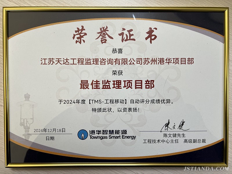 荣誉的加冕,不仅是对监理项目部过去一年辛勤耕耘与卓越成就的高度赞誉,更是对未来征程的深切鼓舞与鞭策。“长风破浪会有时,直挂云帆济沧海”,未来,苏州港华监理项目部将秉持初心,矢志不渝,以实际行动擦亮天达品牌,力争为公司创造新的荣誉。